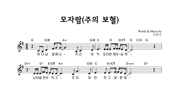 | 모자람 (주의 보혈) | 성가 4부 + 피아노 반주 |
