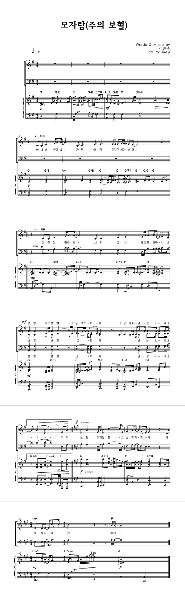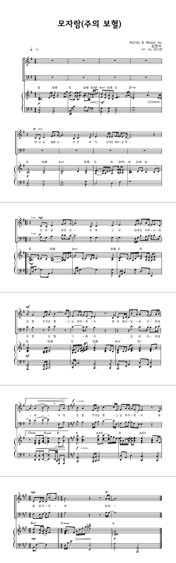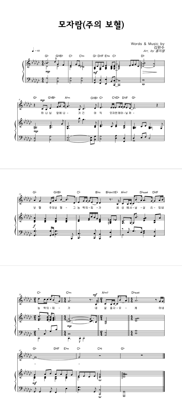 | 모자람 (주의 보혈) | 성가 3부 + 피아노 반주 |