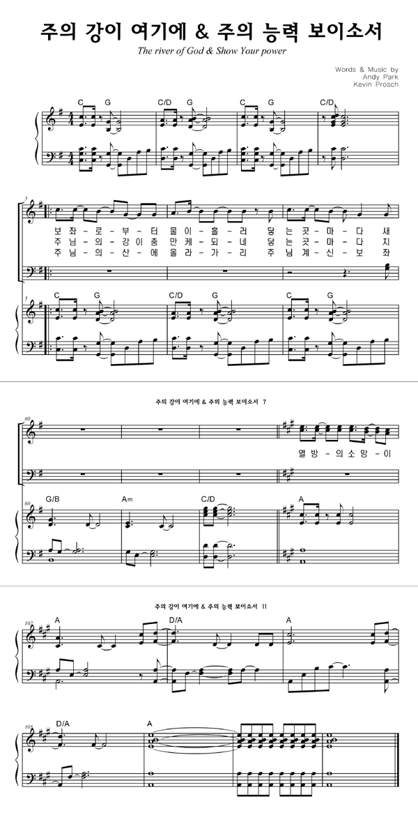 | 주의 강이 여기에 큰글씨 | 성가 4부 + 피아노 반주 |