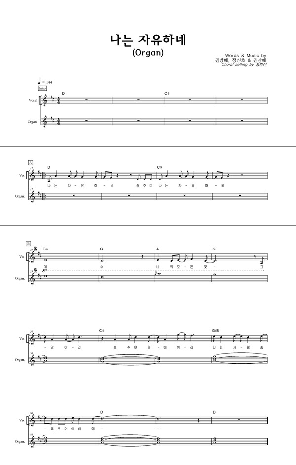 | 나는 자유하네 | 성가 2부 + 피아노 반주 |