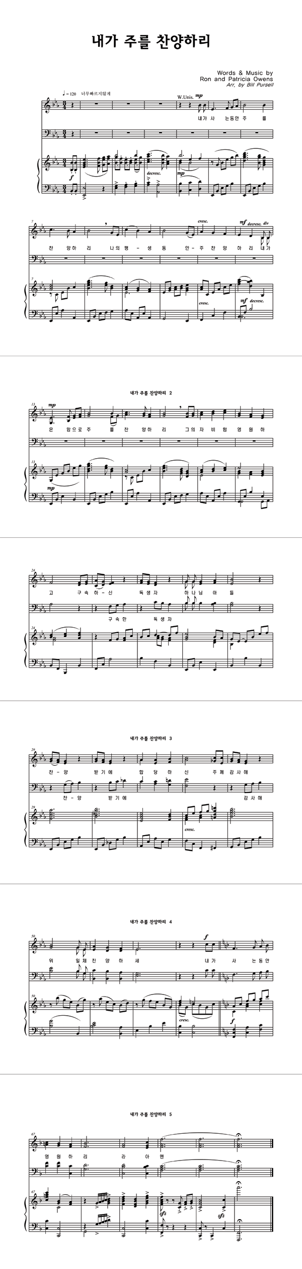 '내가 주를 찬양하리' 의 다른 악보형식