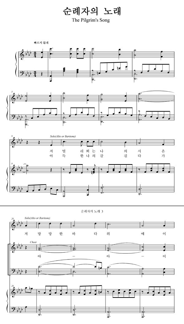 | 순례자의 노래 | 성가 4부 + 피아노 반주 |