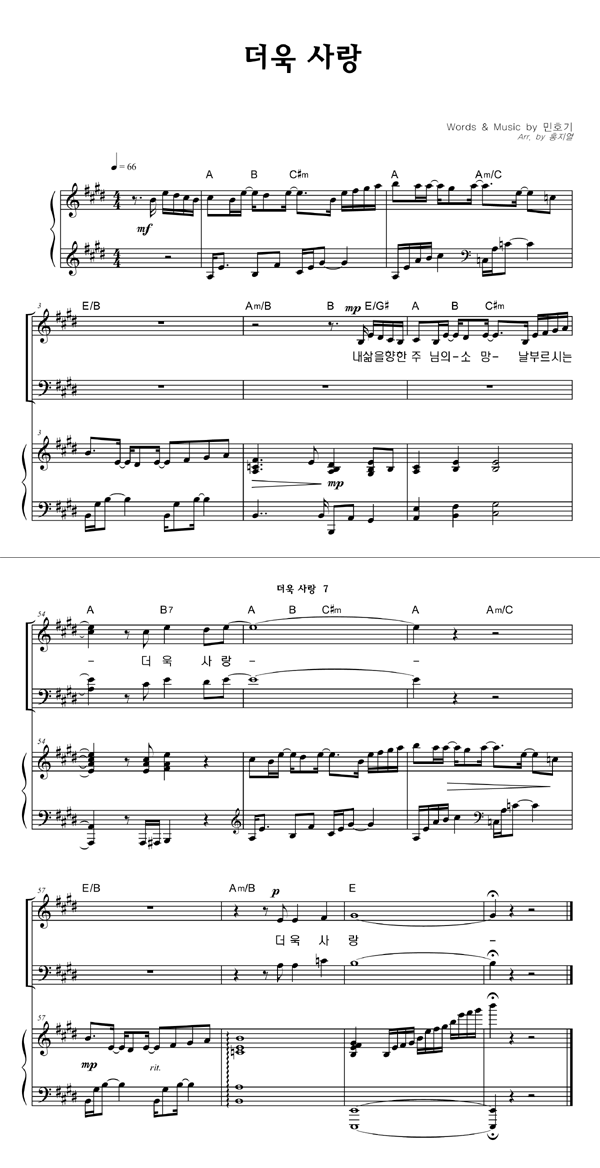 | 더욱 사랑 | 성가 4부 + 피아노 반주 |