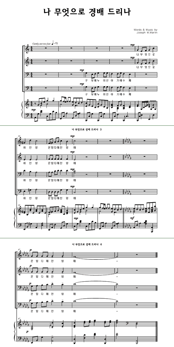 '나 무엇으로 경배 드리나' 의 다른 악보형식