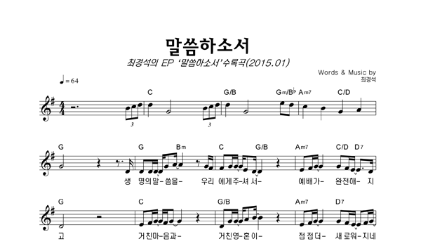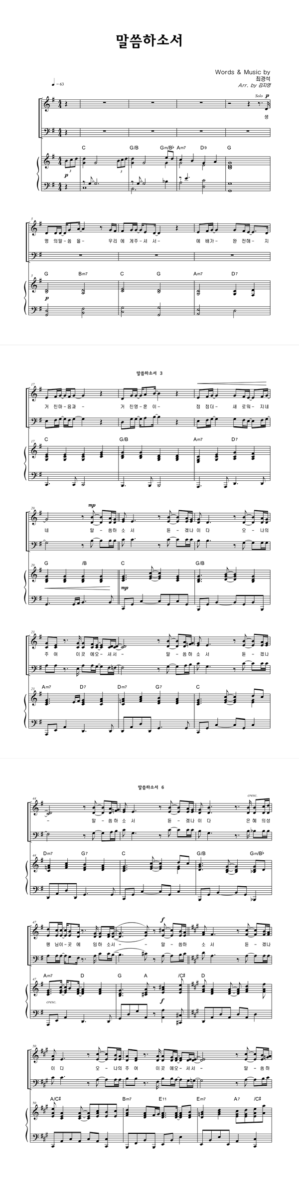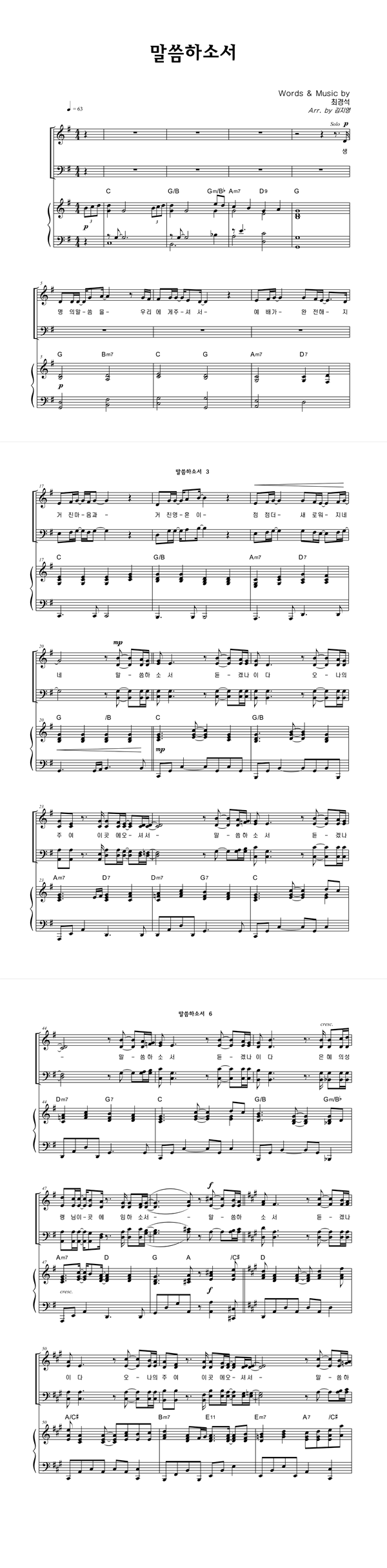 | 말씀하소서 | 성가 2부 + 피아노 반주 |