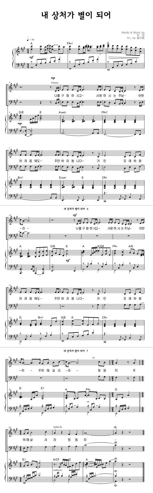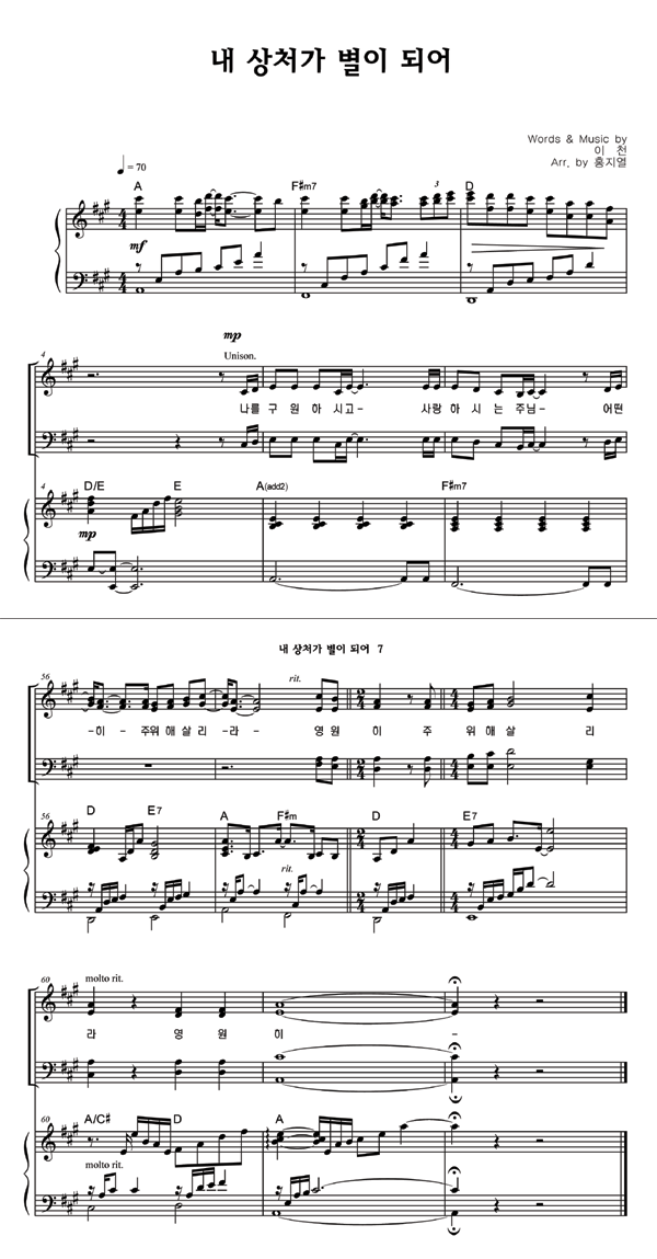 '내 상처가 별이 되어' 의 다른 악보형식