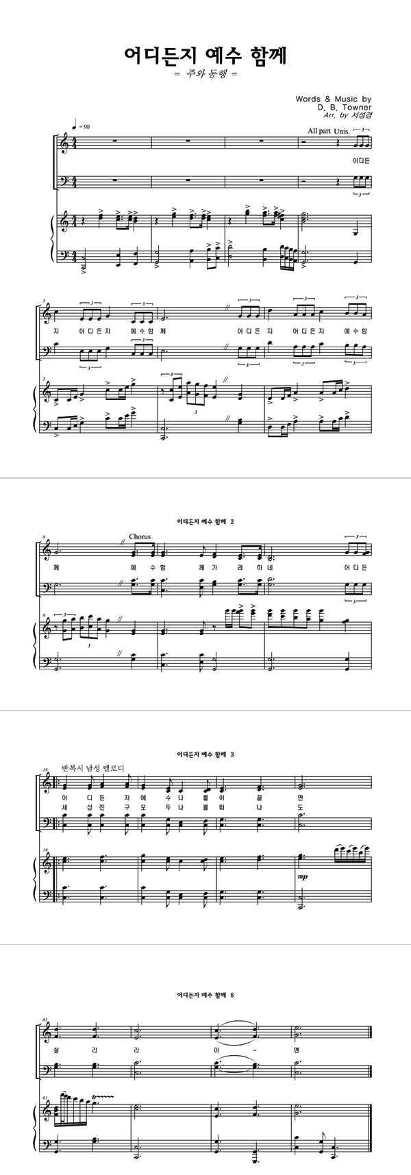 '어디든지 예수 함께' 의 다른 악보형식