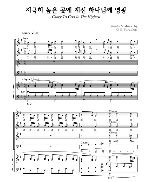 '지극히 높은 곳에 계신 하나님께 영광' 의 다른 악보형식
