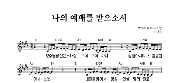 | 나의 예배를 받으소서 | 성가 2부 + 피아노 반주 |