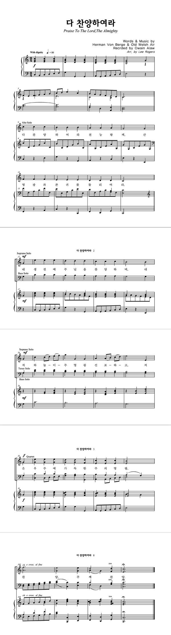 '다 찬양하여라' 의 다른 악보형식