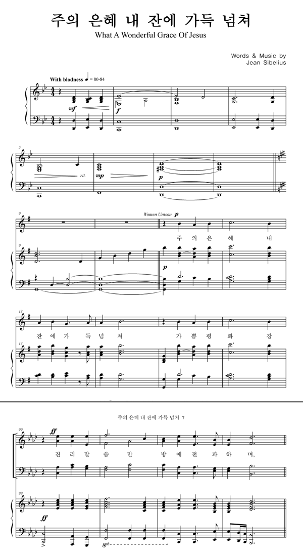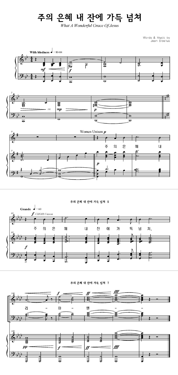 '주의 은혜 내 잔에 가득 넘쳐' 의 다른 악보형식