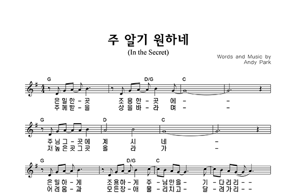 '은밀한 곳 조용한 곳에 (주 알기 원해)' 의 다른 악보형식