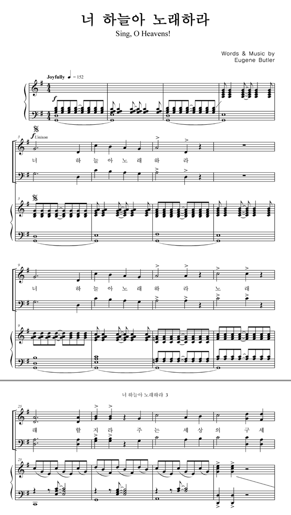 '너 하늘아 노래하라' 의 다른 악보형식
