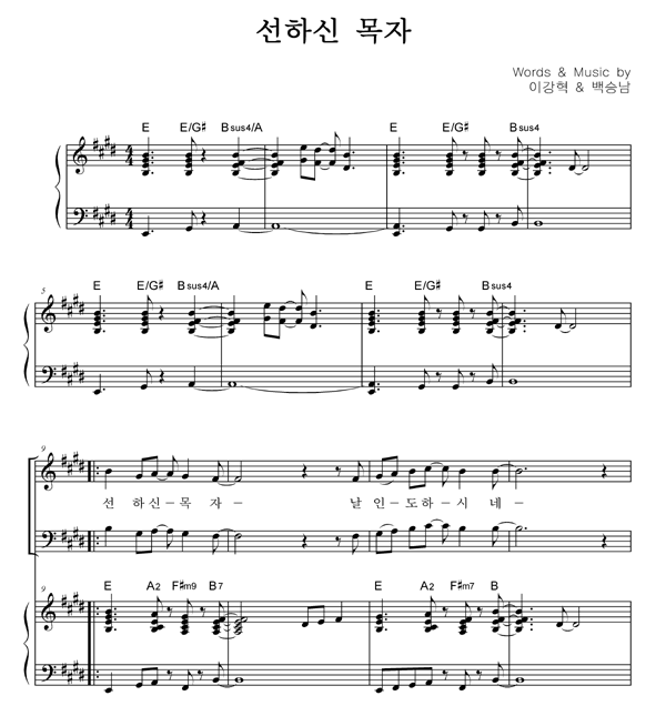 | 선하신 목자 | 성가 4부 + 피아노 반주 |