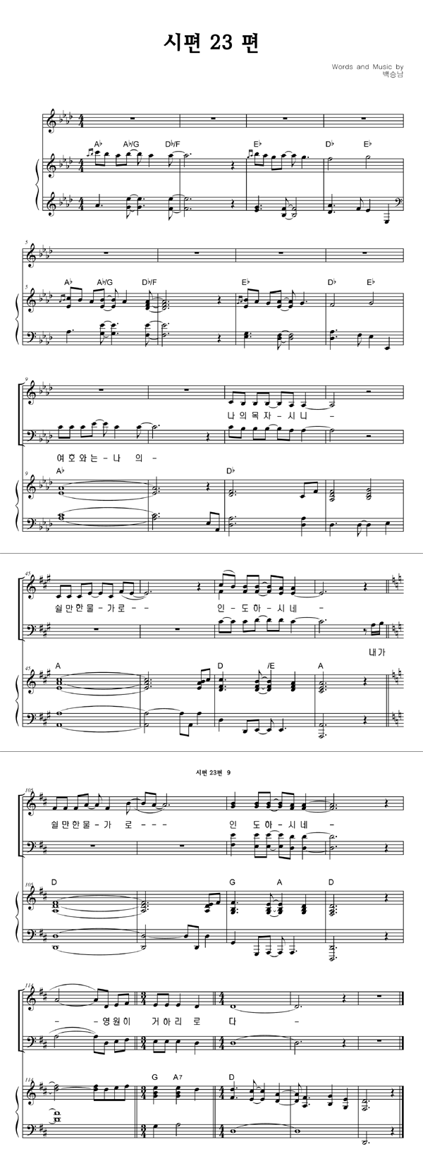 | 시편 23 | 성가 4부 + 피아노 반주 |