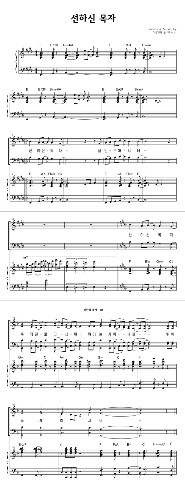 | 선하신 목자 큰글씨 | 성가 4부 + 피아노 반주 |