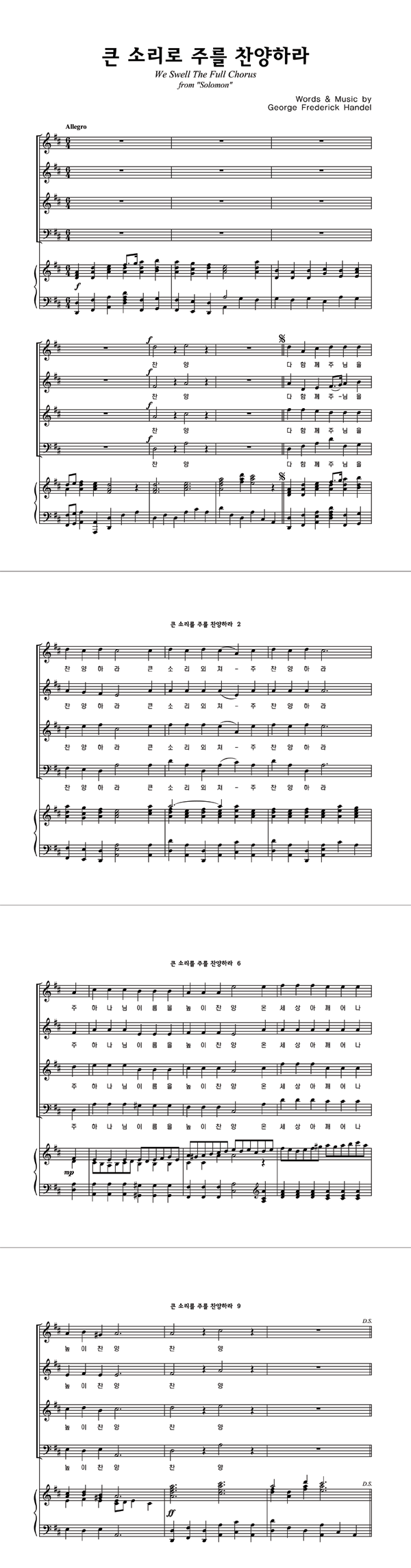 '큰 소리로 주를 찬양하라' 의 다른 악보형식