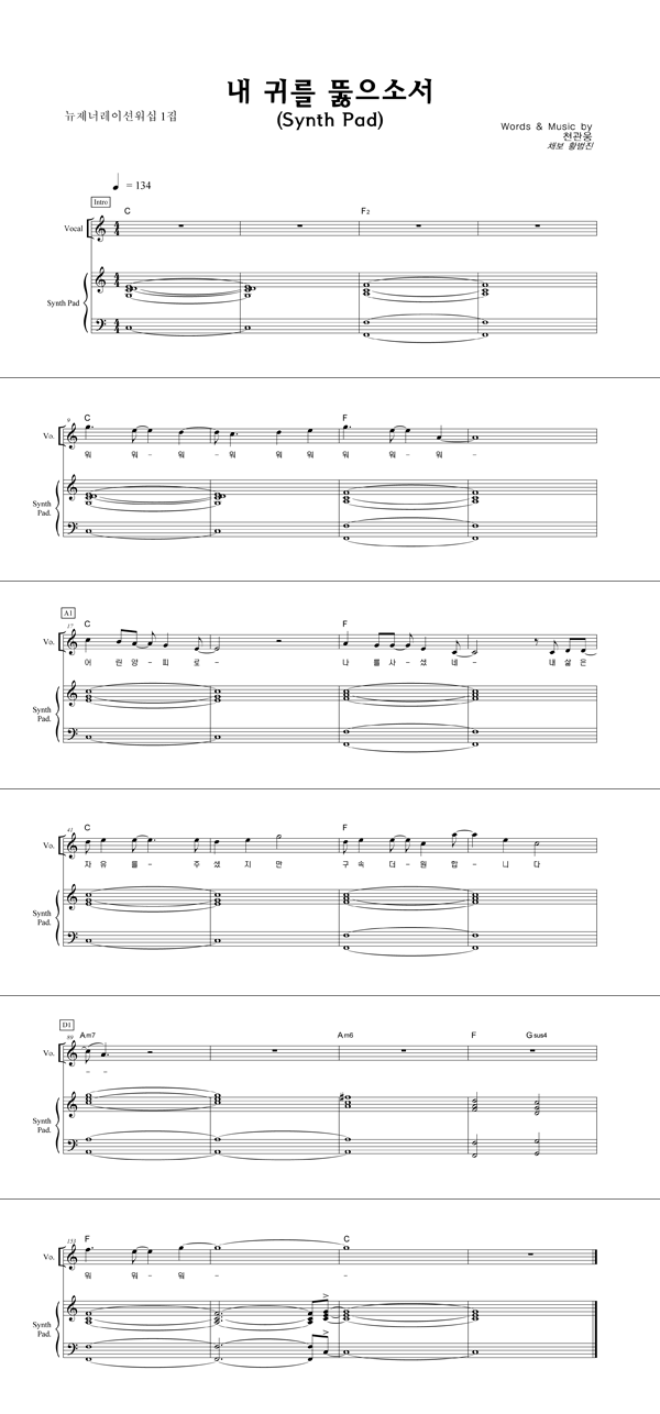 | 내 귀를 뚫으소서 | 성가 2부 + 피아노 반주 |