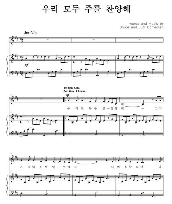 '우리 모두 주를 찬양해' 의 다른 악보형식
