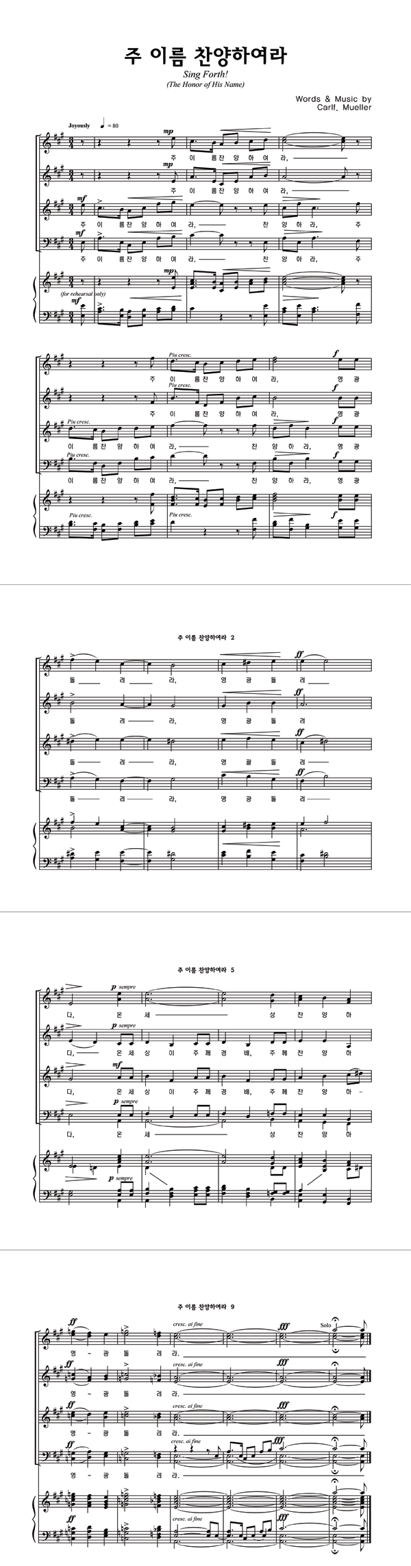 '주 이름 찬양하여라' 의 다른 악보형식