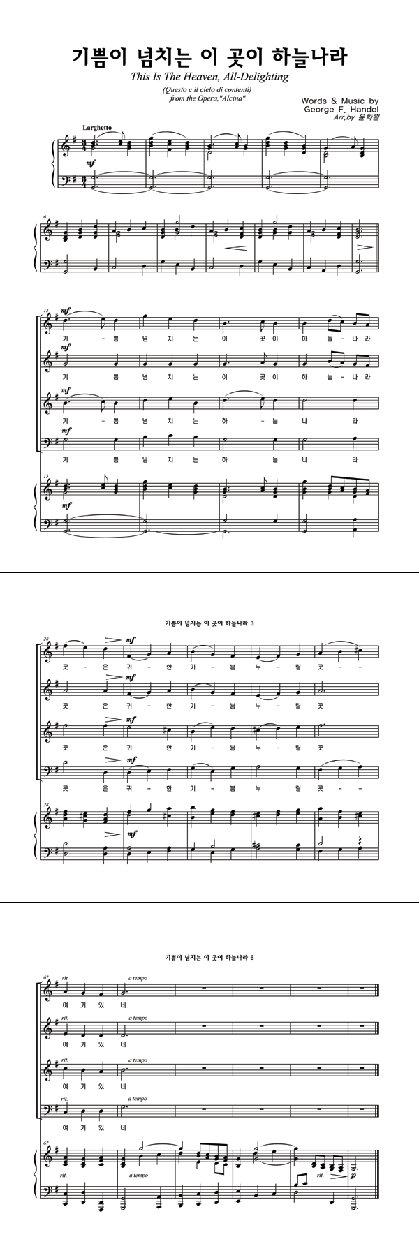 '기쁨이 넘치는 이 곳이 하늘나라' 의 다른 악보형식