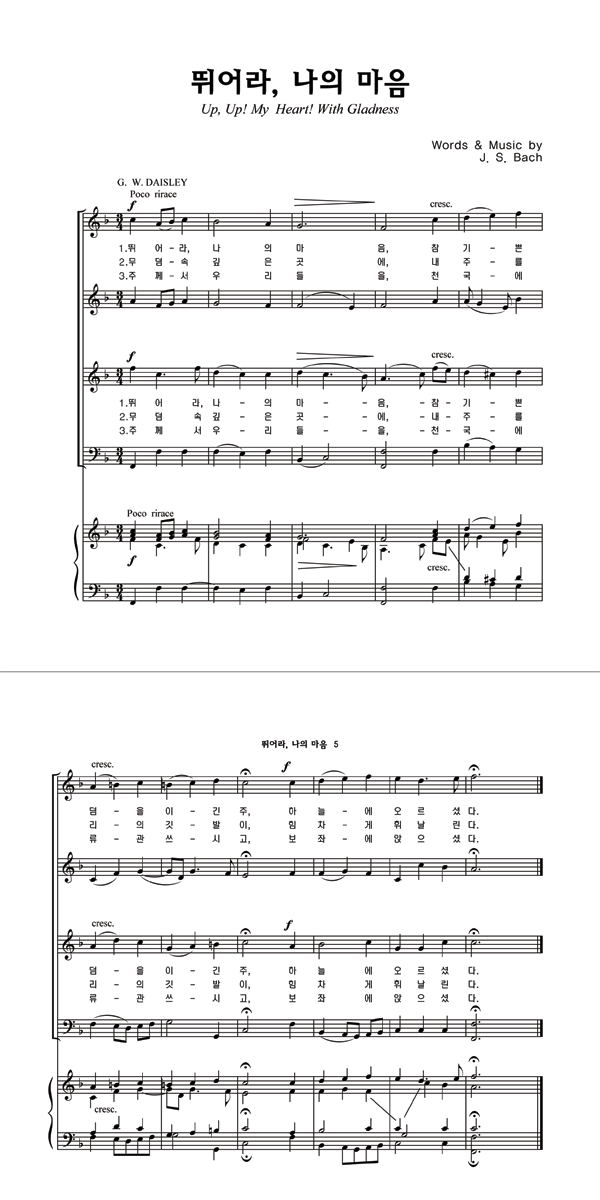 '뛰어라, 나의 마음' 의 다른 악보형식