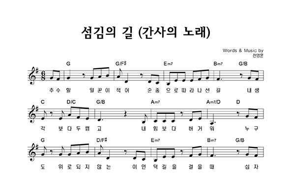 | 섬김의 길 (간사의 노래) | 성가 2부 + 피아노 반주 |