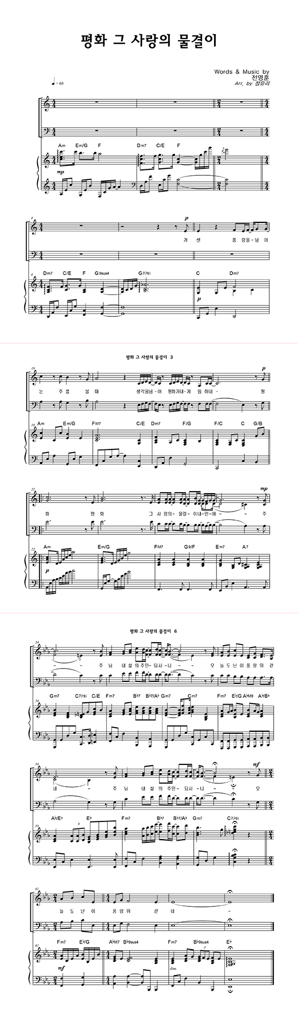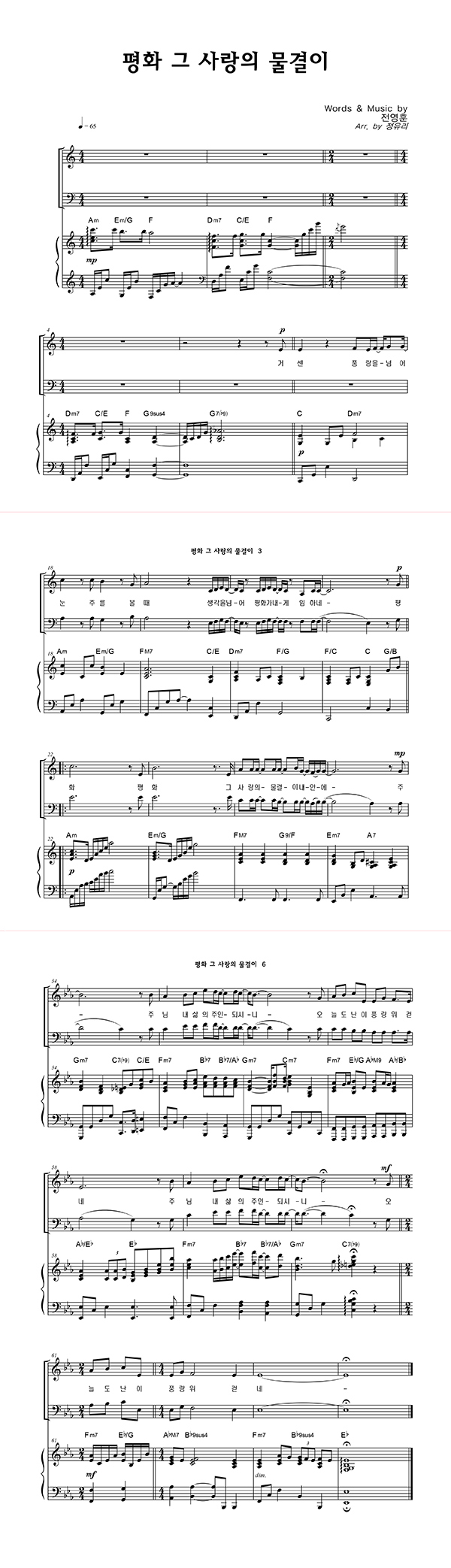 | 평화 그 사랑의 물결이 | 성가 3부 + 피아노 반주 |