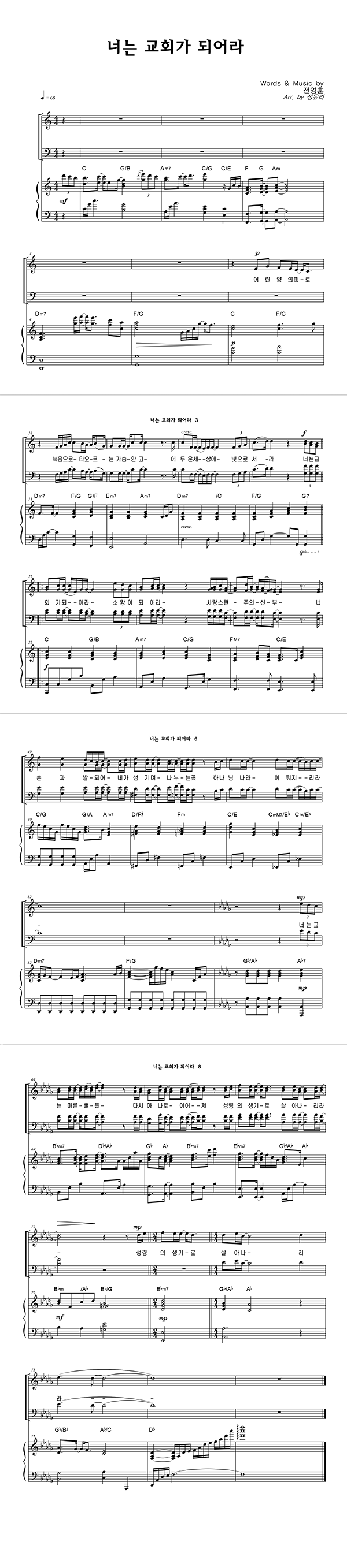 | 너는 교회가 되어라 | 성가 3부 + 피아노 반주 |