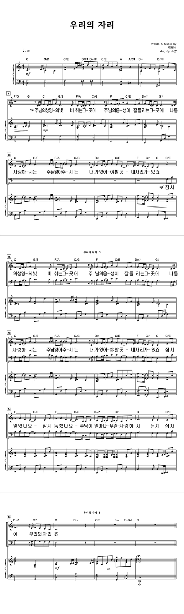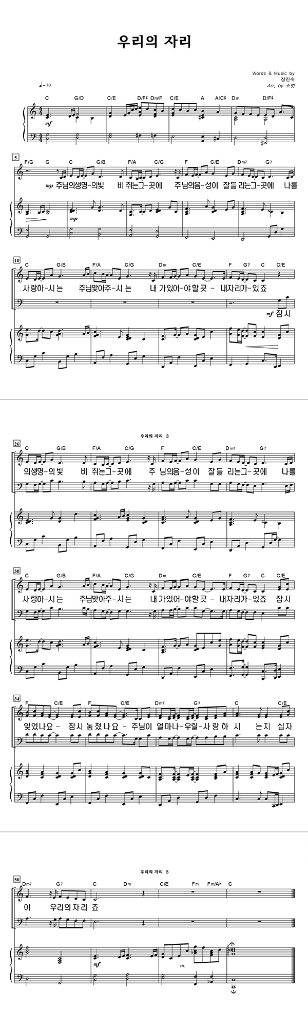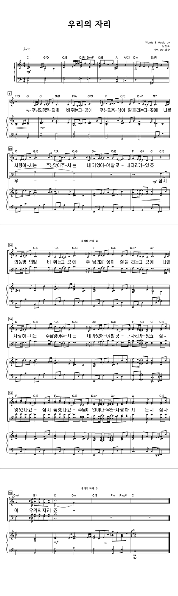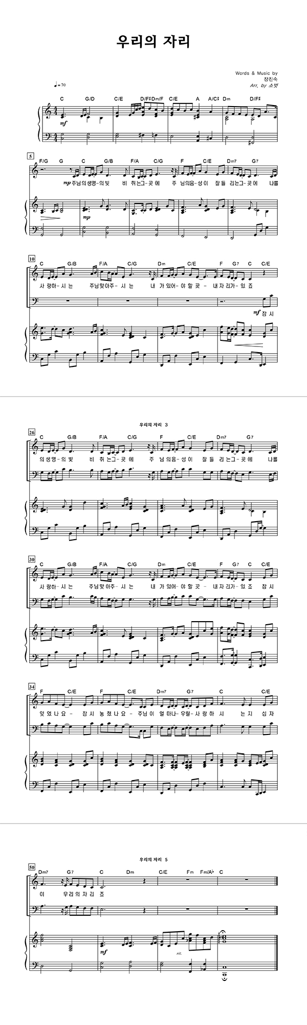 | 우리의 자리 (feat. 김동욱, 조서연, 조성범, 강지은, 캔송키즈) | 성가 4부 + 피아노 반주 |