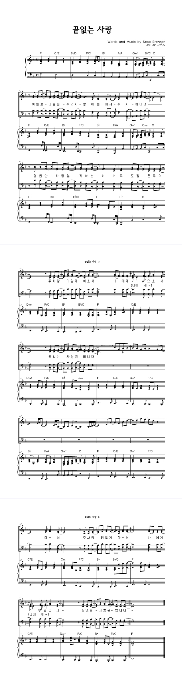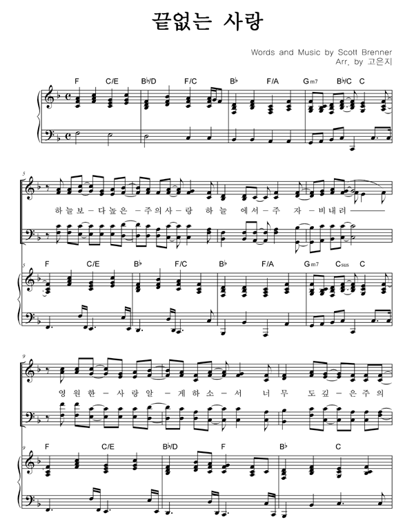 | 끝없는 사랑 | 성가 2부 + 피아노 반주 |