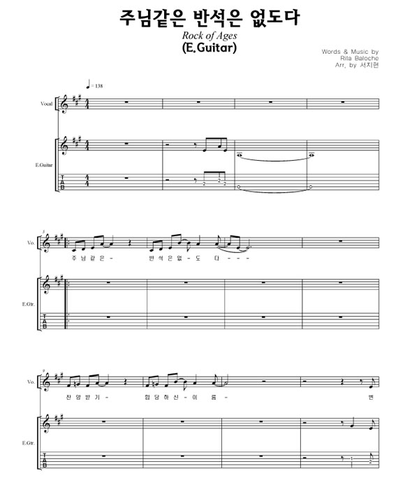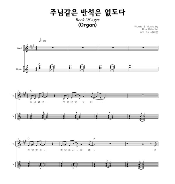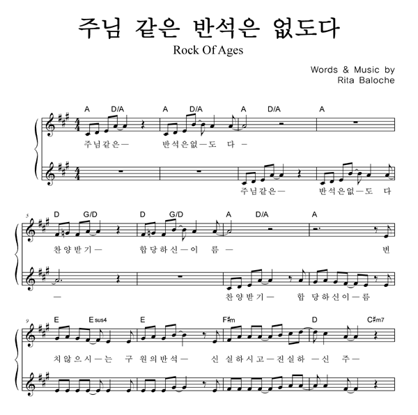 '만세 반석(주님 같은 반석은 없도다)' 의 다른 악보형식