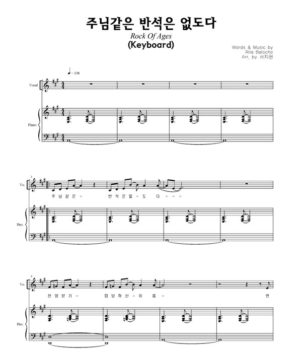 | 내 주 같은 분 없네 | 성가 4부 + 피아노 반주 |