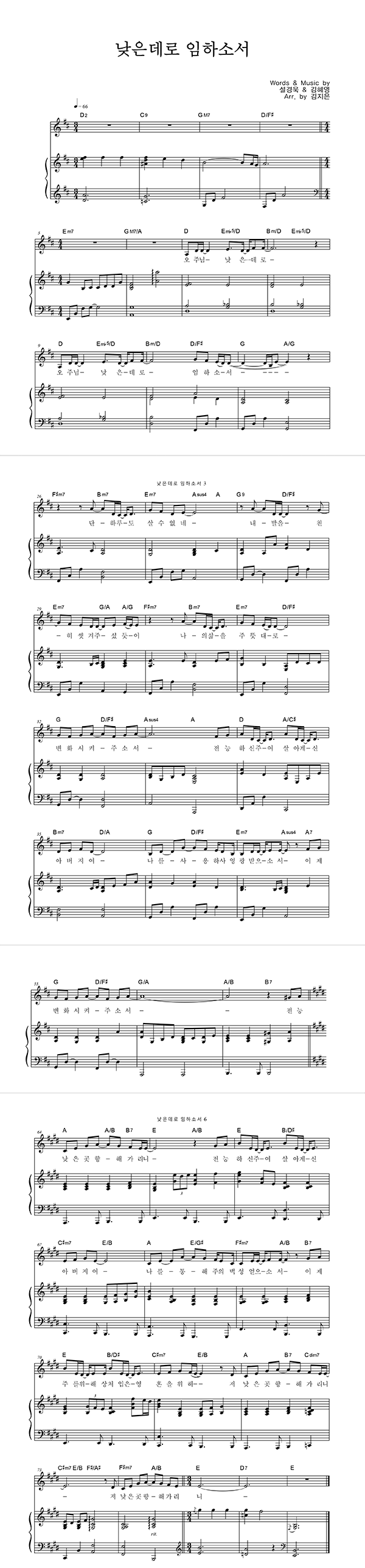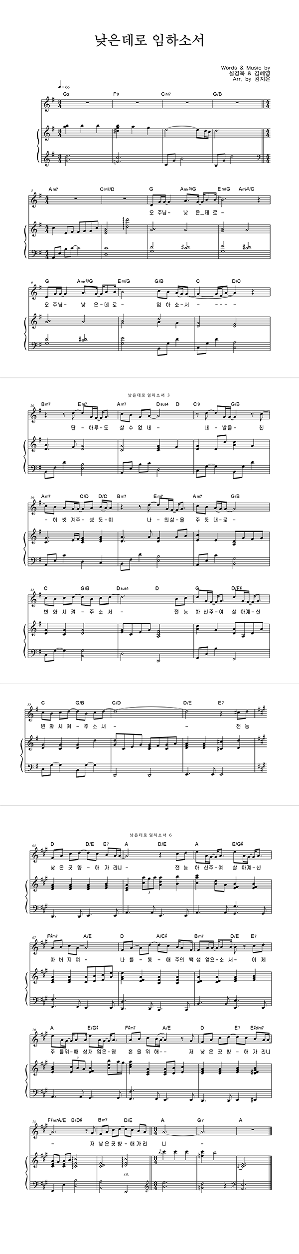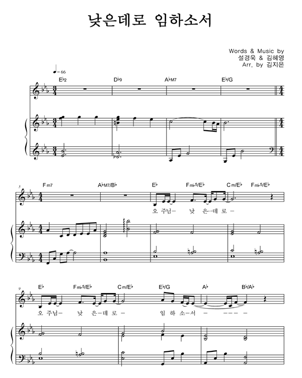 '낮은데로 임하소서' 의 다른 악보형식