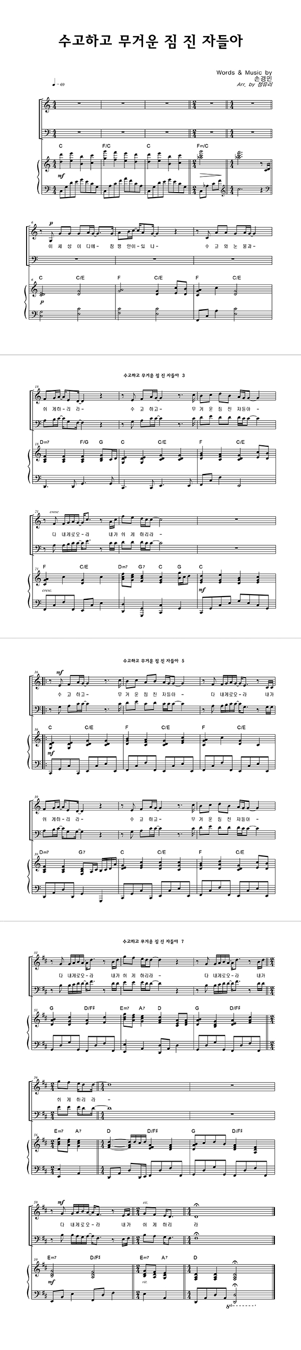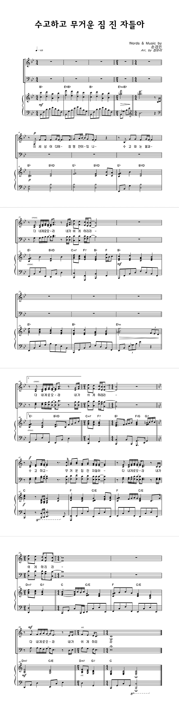 | 수고하고 무거운 짐 진 자들아 | 성가 2부 + 피아노 반주 |