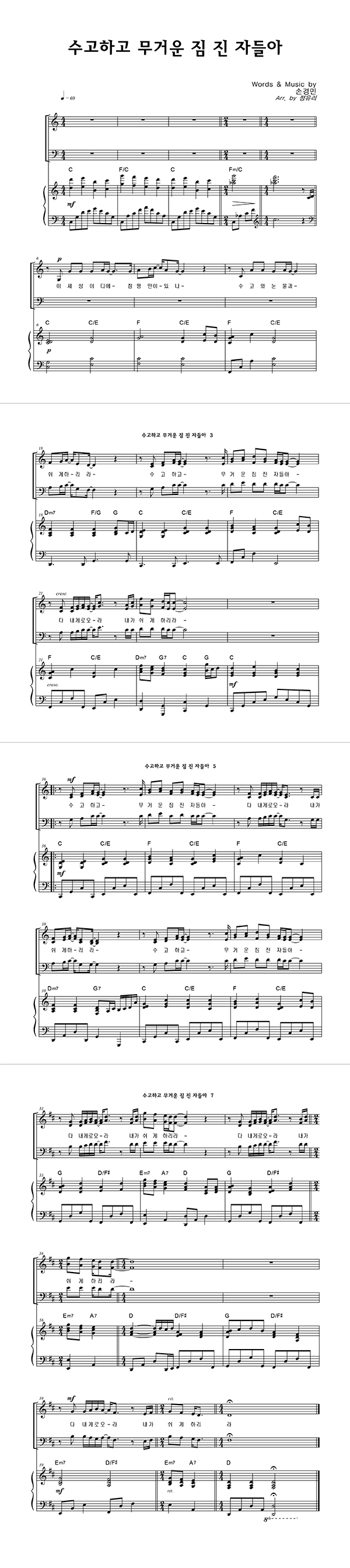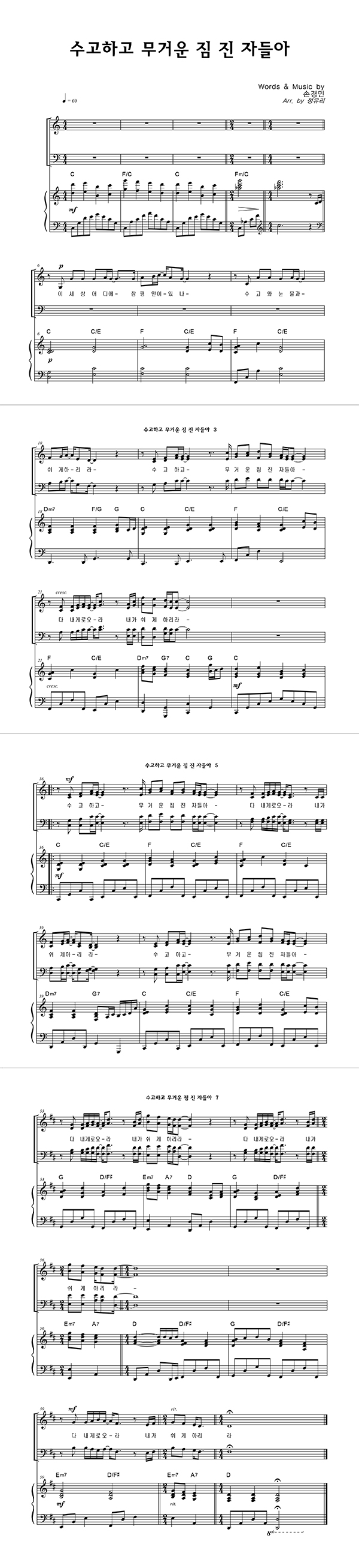 | 수고하고 무거운 짐 진 자들아 | 성가 3부 + 피아노 반주 |
