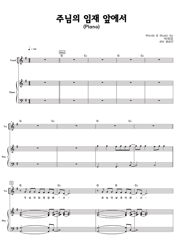 | 주님만 사랑하리 | 성가 2부 + 피아노 반주 |