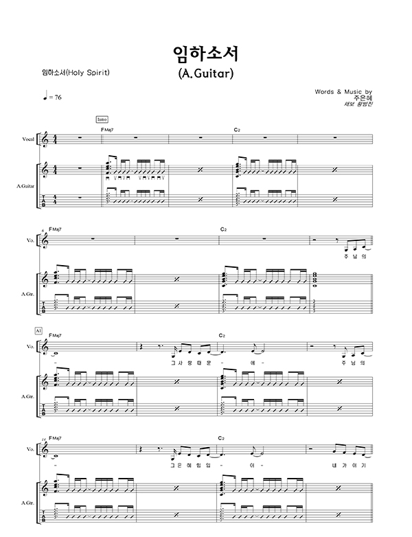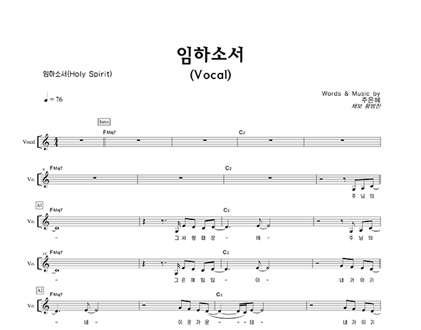 '임하소서 (Holy Spirit)' 의 다른 악보형식