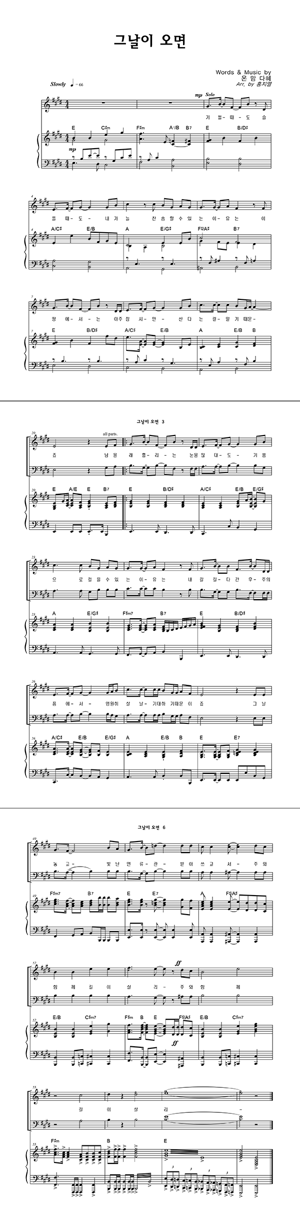 | 그날이 오면 | 성가 3부 + 피아노 반주 |