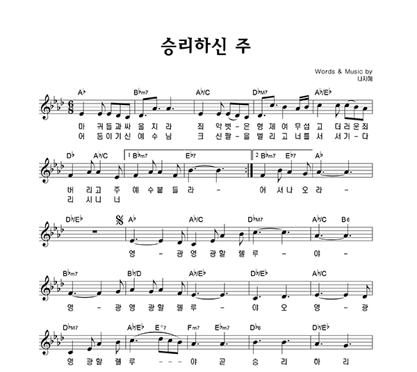 | 승리하신 주 큰글씨 | 성가 4부 + 피아노 반주 |