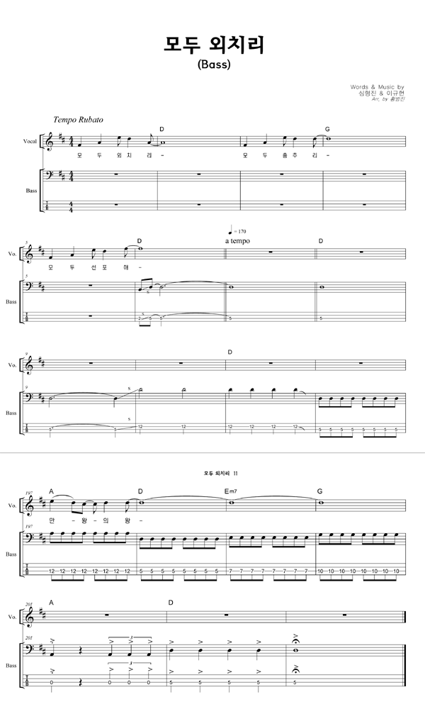 | 밴드스코어 베이스기타 |