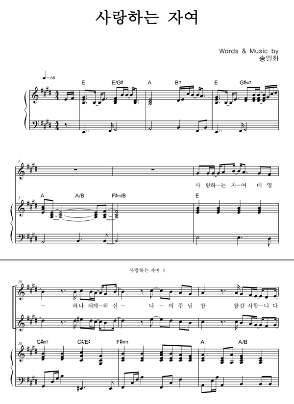| 사랑하는 자여 | 성가 2부 + 피아노 반주 |