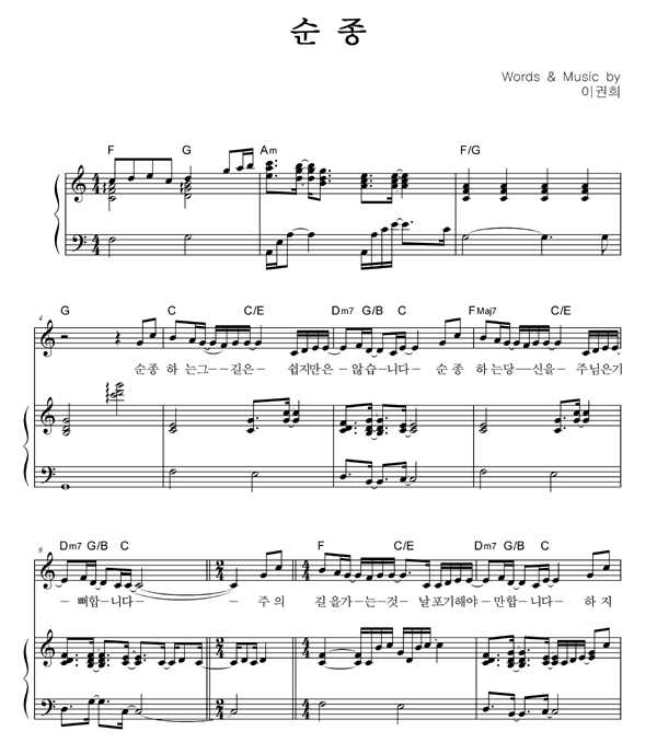 | 길 큰글씨 | 성가 4부 + 피아노 반주 |