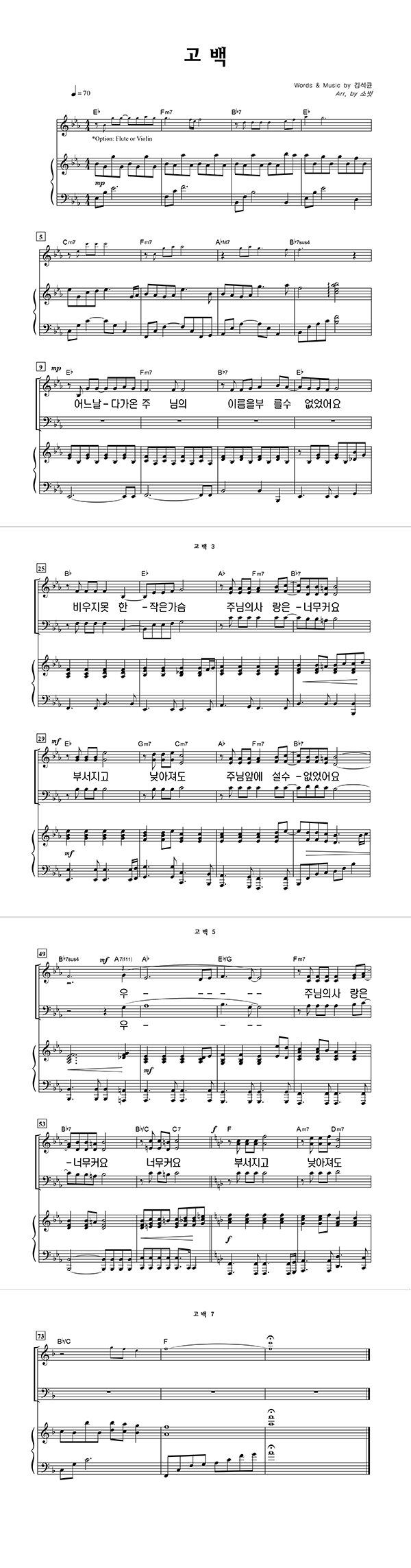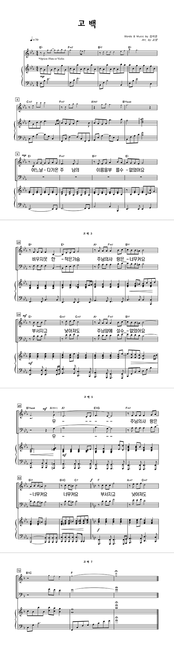 | 고백 큰글씨 | 성가 3부 + 피아노 반주 |