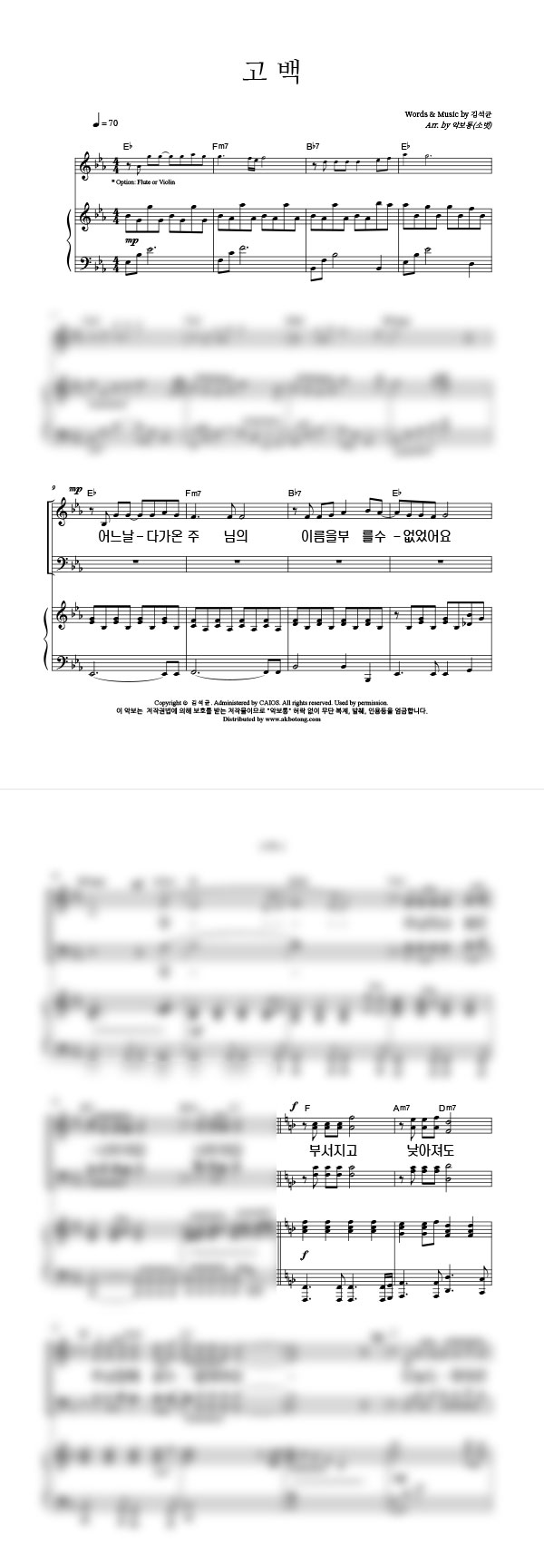 | 고백 큰글씨 | 성가 4부 + 피아노 반주 |