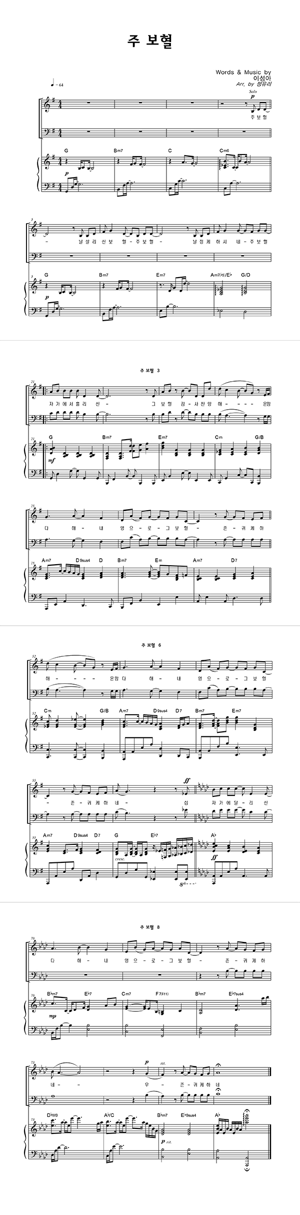 | 주 보혈 | 성가 4부 + 피아노 반주 |