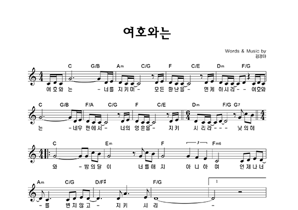 | 여호와는 | 성가 2부 + 피아노 반주 |