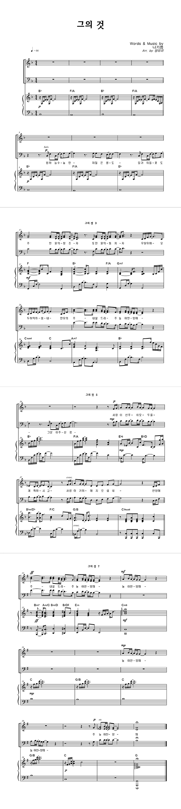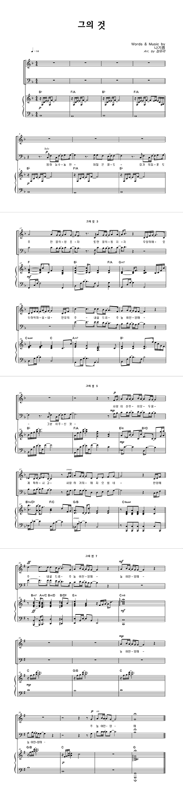 | 그의 것 | 성가 3부 + 피아노 반주 |