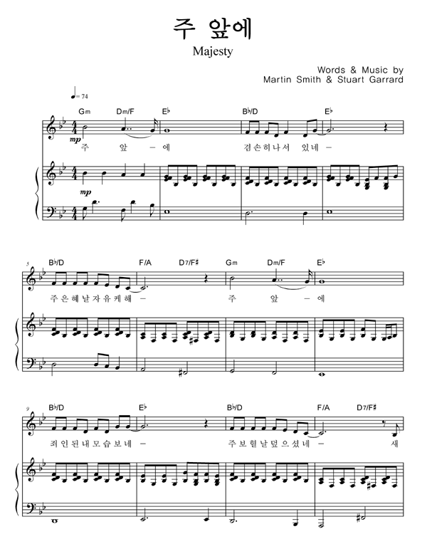 | 주 앞에 엎드려 | 성가 4부 + 피아노 반주 |