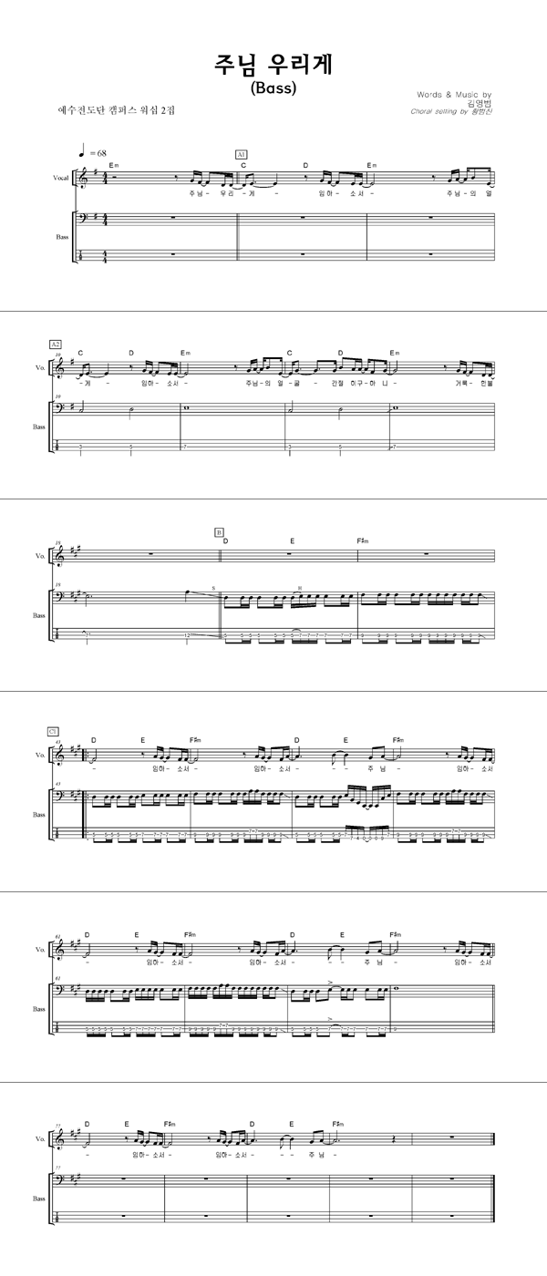 | 춤추며 찬양해 | 성가 2부 + 피아노 반주 |
